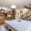Im Obergeschoss befindet sich heute der Hauptwohnsitz. Am Eingang empfängt uns ein großer Wohnbereich mit halboffener Küche, drei Schlafzimmern, die heute jeweils als Hauptschlafzimmer genutzt werden, Waschküche und Speisekammer.