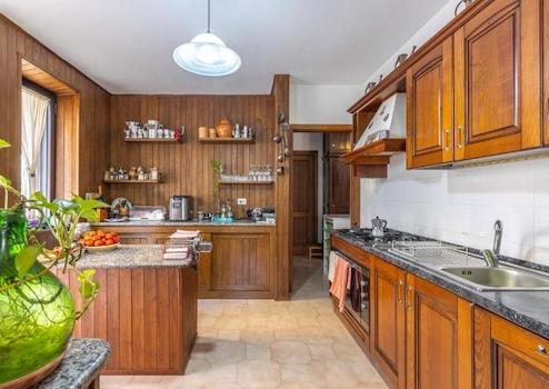 Die gleiche Etage öffnet sich von vorne zum Garten und zur großen ebenen Terrasse, während Sie von der Rückseite, auf der Küchenseite, Zugang zum Hinterhof/Garten haben, ideal, um angenehme Sommerabende in Gesellschaft zu verbringen, auch an der frischen Luft Luft.