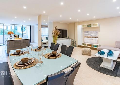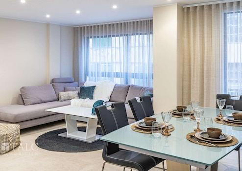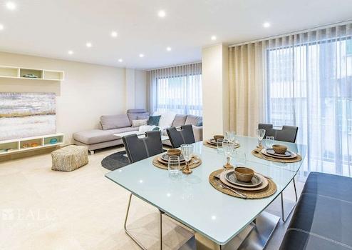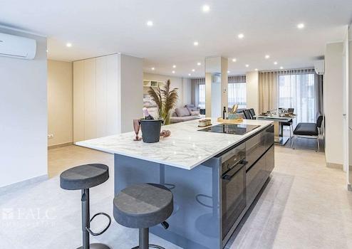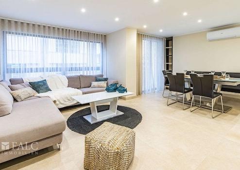 Dieses exklusiv renovierte Apartment in Palmas Altstadt befindet sich im 3. Stock eines gepflegten und zentral gelegenen Mehrparteienhauses mit Fahrstuhl und überzeugt durch seine exzellente Lage. Die hochwertig möblierte Wohnung besticht durch ihr klares, modernes Design, eine bebaute Fläche von ca. 109 m² sowie eine komfortable und durchdachte Raumaufteilung.