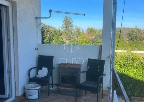 Die Wohnung liegt im 1. Stock eines kleineren Wohnhauses und bietet rund 75 m2 Gesamtfläche (im Grundbuch als Wohnung B mit 75 m2 eingetragen, inklusive überdachter Terrasse zu 50 % angerechnet). Sie besteht aus einem großzügigen Eingangsflur, der alle Räume verbindet, einer Küche mit Essbereich, Wohnzimmer, einem Schlafzimmer, Bad und Abstellraum. Vom Wohnzimmer gelangt man auf eine angenehme, überdachte Terrasse, ideal für Sommerabende. Dank des Grundrisses und der vorhandenen Installationen besteht die Möglichkeit, die Wohnung mit zusätzlicher Investition in bis zu drei kleinere Wohneinheiten/Ferienapartments umzubauen – sehr interessant für Kapitalanleger.