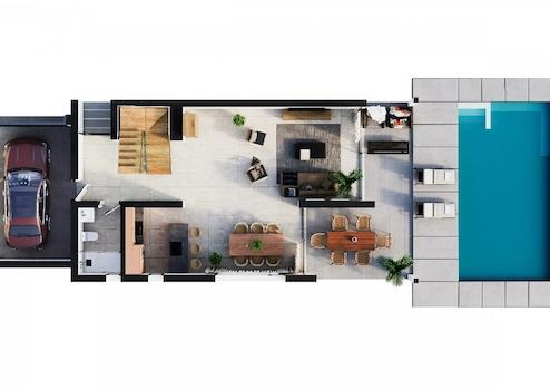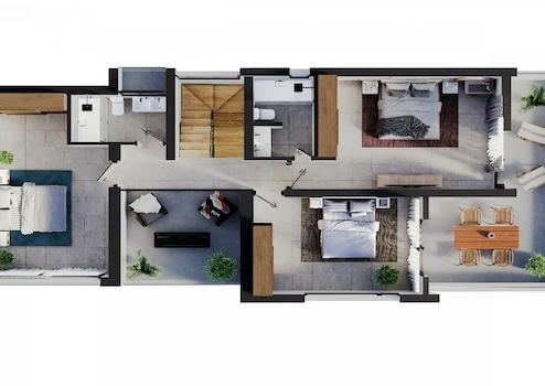 Moderne Villen mit 3 Schlafzimmern und 3 Bädern auf unabhängigen Grundstücken, durchdacht gestaltet über zwei Etagen mit hellen Innenräumen, offenen Räumen und großzügigen Terrassen. Es erwartet Sie ein perfektes Gleichgewicht aus zeitgenössischem Stil und Funktionalität.