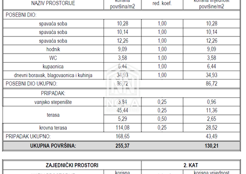 Die Wohnung befindet sich im ersten Gebäude, im zweiten Stock mit einer schönen Dachterrasse, mit einer Gesamtnutzfläche von 293,98 m2 und einer berechneten Fläche von 137,94 m2. Dieses geräumige Apartment bietet komfortablen Wohnraum und besteht aus folgenden Zimmern: