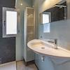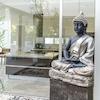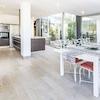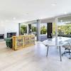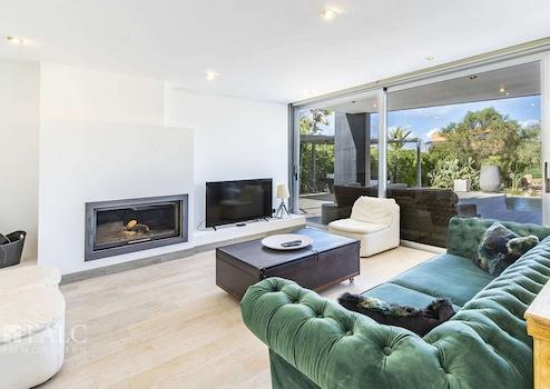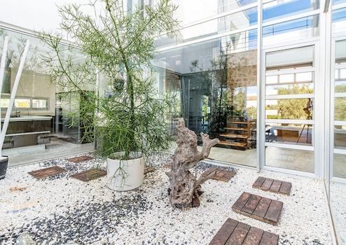 Im Erdgeschoss beeindruckt ein kleiner, verglaster japanischer Garten, der für eine besondere Atmosphäre sorgt. Zudem verfügt diese Ebene über ein offenes Wohnzimmer mit Kamin und direktem Zugang zur sonnigen Terrasse, eine voll ausgestattete Küche mit Kochinsel, ein helles Esszimmer, ein Schlafzimmer sowie ein Badezimmer.