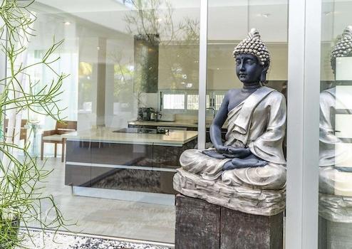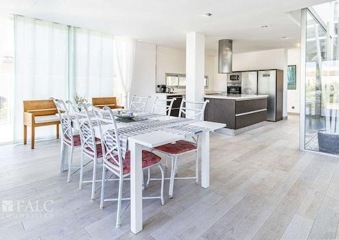 Der Außenbereich besticht durch einen beheizten Salzwasserpool, einen BBQ-Bereich, einen gepflegten Garten sowie großzügige Terrassen mit gemütlicher Chill-out-Zone.