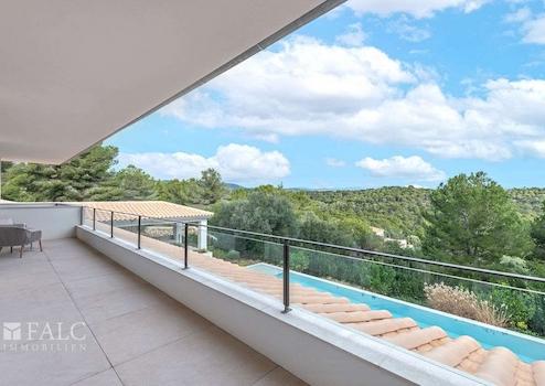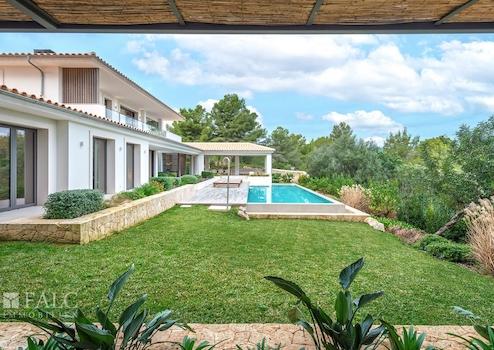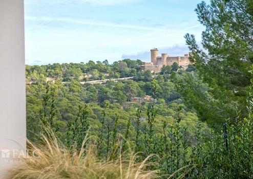 Mediterrane Villa mit Pool und Blick auf das Bellver Schloss in Bonanova