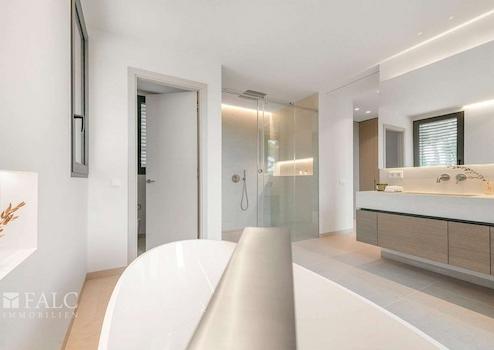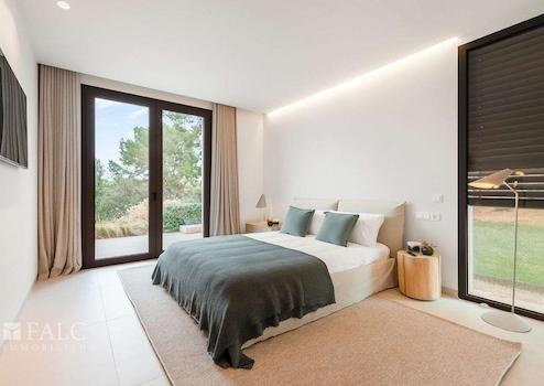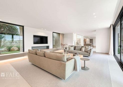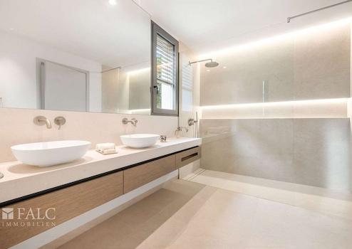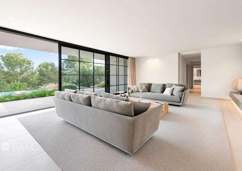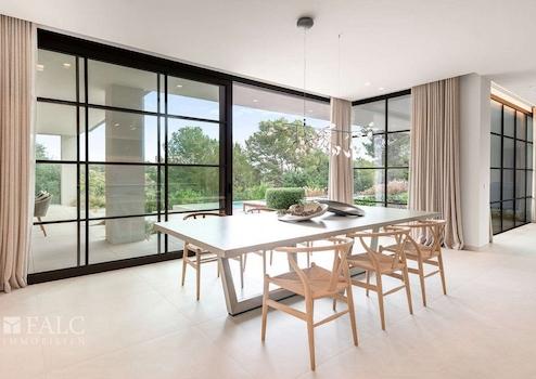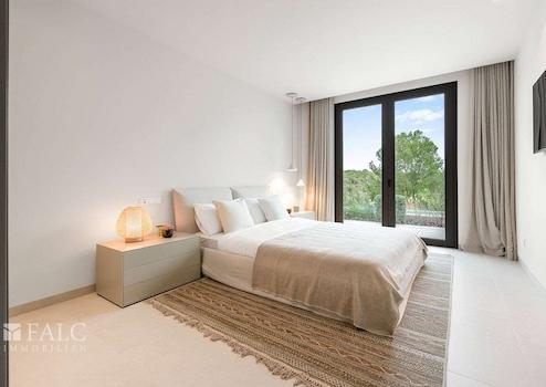 Diese spektakuläre Neubauvilla in La Bonanova, einem der begehrtesten Viertel Palmas, bietet einen atemberaubenden Blick auf das Schloss Bellver und das Tramuntana-Gebirge. Die nach Süden ausgerichtete Villa wurde 2022 auf einem flachen Grundstück von ca. 2.290 m² errichtet und verfügt über eine bebaute Fläche von ca. 551 m².