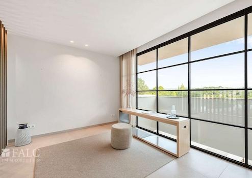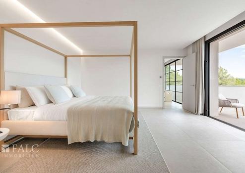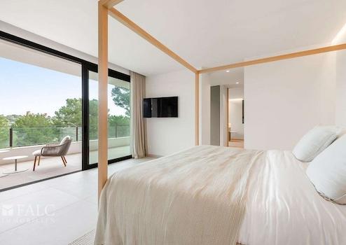 Das Obergeschoss ist ausschließlich der Master-Suite vorbehalten, die über ein großes Bad en suite, einen Ankleideraum und eine private Terrasse mit unvergleichlichem Blick auf das Schloss Bellver verfügt.