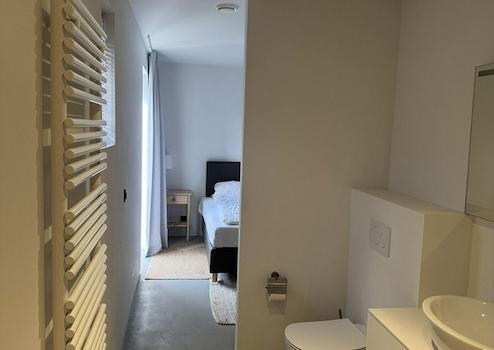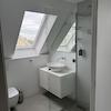 Im Obergeschoss befindet sich ein 4,1 m² großes Badezimmer mit Einzelwaschbecken, Toilette und Dusche.