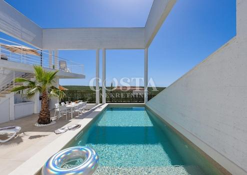 In Debeljak bei Zadar steht eine modern eingerichtete Villa zum Verkauf. Das 200 m² große Gebäude befindet sich auf einem 500 m² großen Grundstück und besteht aus Erdgeschoss und Obergeschoss. Im Erdgeschoss befinden sich ein geräumiges Wohnzimmer, eine Küche mit Essbereich, ein Schlafzimmer mit Bad und ein separates WC. Vom Wohnzimmer gelangt man auf eine Terrasse mit Swimmingpool und Sommerküche. Im Obergeschoss befinden sich drei Schlafzimmer mit jeweils eigenem Bad sowie eine Terrasse mit Whirlpool. Die Villa besticht durch ihre moderne Architektur und ist vollklimatisiert. Private Parkplätze stehen im Garten zur Verfügung.