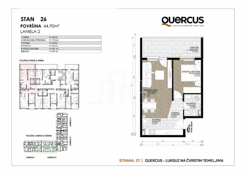Stanpromet.ba - Immobilienagentur wählt AUSSCHLIESSLICH das im Bau befindliche Projekt QUERCUS DOBRINJA IV aus seinem Verkaufsangebot aus. LUXUS AUF SOLIDEM FUNDAMENT – QUERCUS DOBRINJA IV Zeitgenössisches Leben und Bedürfnisse im urbanen Umfeld. Einer der entscheidenden Vorteile für Mieter ist die Tatsache, dass alles, was zu einem komfortablen und erfüllten Leben beiträgt, von Ihrem neuen Zuhause aus erreichbar ist. So haben Sie mehr Möglichkeiten, unvergessliche Momente mit Ihrer Familie zu genießen und jeden Tag neue Inspiration zu finden. QUERCUS DOBRINJA ist ein freistehender Wohnkomplex mittlerer Höhe. Auf der ersten Etage befinden sich Garagenplätze, im Erdgeschoss befinden sich entworfene Geschäftsräume und auf sechs Etagen hochwertige Apartments mit einem, zwei und drei Schlafzimmern als Penthouse-Etage. Der Komplex besteht aus 4 Gebäuden/Slats mit insgesamt 144 Wohneinheiten unterschiedlicher Größe – von Ein-Zimmer-Wohnungen bis hin zu Drei-Zimmer-Wohnungen – und liegt territorial und administrativ in Istočna Sarajevo, Gemeinde Istočna Ilidža und direkt neben dem Bundesteil die Siedlung Dobrinja IV, genau gegenüber der Schule, Setalište, öffentlichen Verkehrsmitteln, Oberleitungsbussen und Bussen sowie der Driving Range. Der Grundriss des Komplexes hat die Form des Buchstabens „L“, die meisten Wohneinheiten haben eine hervorragende und freie Aussicht und der Sonnenstand morgens, tagsüber und nachmittags bietet den Bewohnern eine hervorragende Aussicht ausgezeichnete Aussicht. QUERCUS DOBRINJA IV bietet das Beste des modernen Stadtlebens als Treffpunkt von Lifestyle, hochwertiger Bauweise und erstklassiger Lage. Unsere Vertriebsmitarbeiter unterbreiten Ihnen ein spezielles Angebot an Wohnungen und stellen Ihnen das Angebot an Wohnbaudarlehen vor, die exklusiv für das Projekt mit führenden Banken erstellt wurden und die für QUERCUS DOBRINJA IV zu 100 % des Baupreises zu Sonderkonditionen finanzieren. Die Fotos zeigen die Grundrisse der Penthouse-Wohnungen mit einem, zwei und drei Schlafzimmern. Für aktuelle Informationen zu den verbleibenden Wohnungen rufen Sie uns gerne an. Zeigen Sie Ihr Interesse und genießen Sie die Lebensqualität, die Sie verdienen! Für alle Informationen rufen Sie uns an! Direkte Kontaktnummer: + + ID CODE:
