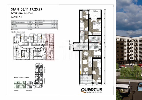 Stanpromet.ba - Immobilienagentur wählt AUSSCHLIESSLICH das im Bau befindliche Projekt QUERCUS DOBRINJA IV aus seinem Verkaufsangebot aus. LUXUS AUF SOLIDEM FUNDAMENT – QUERCUS DOBRINJA IV Zeitgenössisches Leben und Bedürfnisse im urbanen Umfeld. Einer der entscheidenden Vorteile für Mieter ist die Tatsache, dass alles, was zu einem komfortablen und erfüllten Leben beiträgt, in Reichweite Ihres neuen Zuhauses liegt und Sie mehr Möglichkeiten haben, unvergessliche Momente mit Ihrer Familie zu genießen und jeden Tag neue Inspiration zu finden. QUERCUS DOBRINJA ist ein freistehender Wohnkomplex mittlerer Höhe. Auf der ersten Etage befinden sich Garagenplätze, im Erdgeschoss befinden sich entworfene Geschäftsräume und auf sechs Etagen hochwertige Apartments mit einem, zwei und drei Schlafzimmern als Penthouse-Etage. Der Komplex besteht aus 4 Gebäuden/Slats mit insgesamt 144 Wohneinheiten unterschiedlicher Größe – von Ein-Zimmer-Wohnungen bis hin zu Drei-Zimmer-Wohnungen – und liegt territorial und administrativ in Istočna Sarajevo, Gemeinde Istočna Ilidža und direkt neben dem Bundesteil die Siedlung Dobrinja IV, genau gegenüber der Schule, Setalište, öffentlichen Verkehrsmitteln, Oberleitungsbussen und Bussen sowie der Driving Range. Der Grundriss des Komplexes hat die Form des Buchstabens „L“, die meisten Wohneinheiten verfügen über eine hervorragende und freie Aussicht und bieten durch ihre sonnige Lage morgens, tagsüber und nachmittags eine gute Versorgung der Mieter mit einer hervorragenden Aussicht. QUERCUS DOBRINJA IV bietet das Beste des modernen Stadtlebens als Treffpunkt von Lifestyle, hochwertiger Bauweise und erstklassiger Lage. Unsere Vertriebsmitarbeiter unterbreiten Ihnen ein spezielles Angebot an Wohnungen und stellen Ihnen das Angebot an Wohnbaudarlehen vor, die exklusiv für das Projekt mit führenden Banken erstellt wurden und die für QUERCUS DOBRINJA IV zu 100 % des Baupreises zu Sonderkonditionen finanzieren. Die Fotos zeigen Grundrisse von Dreizimmerwohnungen. Für aktuelle Informationen zu den verbleibenden Wohnungen rufen Sie uns gerne an. Zeigen Sie Ihr Interesse und genießen Sie die Lebensqualität, die Sie verdienen! Für alle Informationen rufen Sie uns an! Direkte Kontaktnummer: + + ID CODE: