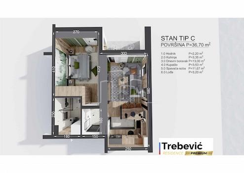 Die Immobilienagentur Stanpromet.ba wählt aus ihrem Verkaufsangebot ein Apartment mit einem Schlafzimmer in der Trebević Residence PREMIUM aus. Erleben Sie das ultimative Leben in Trebević mit unserer außergewöhnlich gestalteten Zweizimmerwohnung, die derzeit im dritten Stock der Trebević Residence Premium gebaut wird. Standort: Das Gebäude befindet sich in Brus, Trebević, Gemeinde Ost-Stari Grad. Die Höhenlage von Metern über dem Meeresspiegel sorgt für ein einzigartiges Naturerlebnis. 15 Autominuten vom Stadtzentrum und 20 Minuten vom Skigebiet Jahorina entfernt. Details der Wohnung: Fläche: 36,70 m² Struktur: Zweizimmerwohnung Boden: 3 Lamellen: 2 Innenraum: Eine großzügige Eingangshalle lädt Sie in eine Oase der Behaglichkeit ein, ein von Tageslicht beleuchtetes Wohnzimmer schafft eine warme Atmosphäre zum Entspannen. Die Küche und das Esszimmer sind sorgfältig gestaltet und bieten Funktionalität und Ästhetik. Im Schlafzimmer erwartet Sie eine ruhige Ecke zum Ausruhen. Der von beiden Zimmern aus zugängliche Balkon bietet einen erfrischenden Raum zum Entspannen mit Blick in die Natur. Qualitätsmerkmale: Elektroheizung mit Fernbedienung sorgt für optimalen Komfort. Smart Ready Apartments ermöglichen Konnektivität und einen modernen Lebensstil. Außenverkleidungen aus PVC tragen zur Energieeffizienz bei. Die Holzarbeiten im Innenbereich verleihen dem Raum Wärme. Parkettböden schaffen eine elegante Atmosphäre. Gemeinschaftsbereiche: Gut organisierte Gemeinschaftsbereiche laden zum geselligen Beisammensein ein. Ein Aufzug im Gebäude trägt zur Praktikabilität bei. Das Gebäude verfügt über 6 Etagen, zum Verkauf stehende Parkplätze im Untergeschoss, Außenparkplätze und Geschäftsflächen im Erdgeschoss. Geschätzte Bauzeit 16 Monate. Eine Ratenzahlung je nach Bauabschnitt ist möglich! Diese Wohnung ist nicht nur ein Zuhause, sondern auch eine Lifestyle-Investition. Werden Sie Teil einer exklusiven Gemeinschaft in Trebević, wo Luxus auf natürliche Schönheit trifft. Kontaktieren Sie uns noch heute, um Ihren Platz in diesem einzigartigen Paradies zu reservieren. Für alle Informationen Ihr AGENT 001! Zertifizierte Immobilienagentur Stanpromet.ba Nekretnine Broker Registrierungsnummer ! Grbavička 8b, Sarajevo ID CODE: