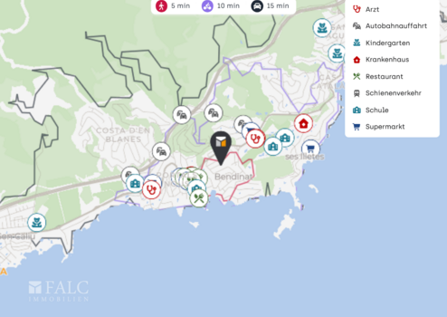 Die Immobilie befindet sich in einer erstklassigen Lage in Bendinat, Spanien, und bietet eine hervorragende Anbindung an die umliegende Infrastruktur. Die nächste Bushaltestelle ist nur wenige Gehminuten entfernt, was eine bequeme Anbindung an den öffentlichen Nahverkehr ermöglicht. Für Autofahrer ist die Autobahnauffahrt ebenfalls in kurzer Distanz erreichbar, was eine schnelle Verbindung zu anderen Teilen der Insel gewährleistet.