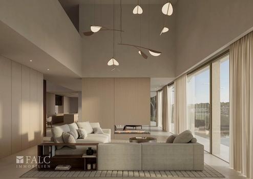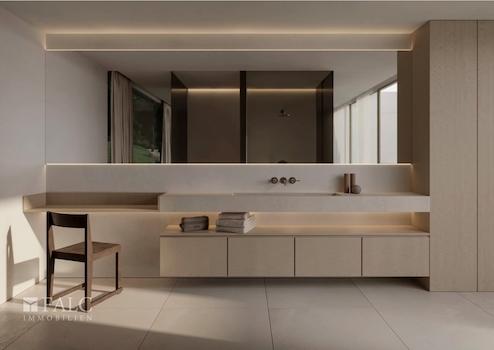 Diese Neubau-Luxusvilla in Cala Vinyas befindet sich derzeit im Bau und wird ca. Ende Sommer 2025 fertiggestellt. Die moderne Immobilie besticht durch ein exklusives Design und eine erstklassige Lage. Auf einem ca. 1.500 m2 erhöhten Grundstück mit westlicher Ausrichtung, ist diese beeindruckende Luxus-Villa nur wenige Minuten von einigen der schönsten Strände Mallorcas entfernt. Die spektakuläre Immobilie verteilt sich auf zwei Ebenen, ein Untergeschoss und einen wunderschönen Poolbereich mit Terrasse. Die grosszügige Wohnfläche von ca. 491 m2 verteilt sich auf ein atemberaubendes offenes Wohn-/Esszimmer mit Zugang auf die Terrassen, eine top moderne Designerküche, eine charmante Master-Suite mit eigenem Ankleidezimmer, sowie 4 weitere Doppelschlafzimmer mit Badezimmern en suite und ein Gäste-WC. Im Untergeschoss befindet sich ein Abstellraum und weitere Räumlichkeiten, die individuell gestaltet werden können. Extras: Fussbodenheizung, Klimaanlage, Aluminiumfenster, Solaranlage, Aufzug und eine Garage für 4 Fahrzeuge. Cala Vinyas ist nur wenige Autominuten von fantastischen Golfplätzen und den exklusiven Yachthäfen von Puerto Portals und Port Adriano entfernt.