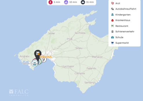Der nächste Flughafen, Palma de Mallorca, ist etwa 30 Autominuten entfernt, was die Lage auch für internationale Reisende attraktiv macht.