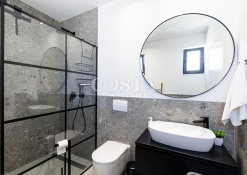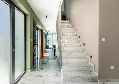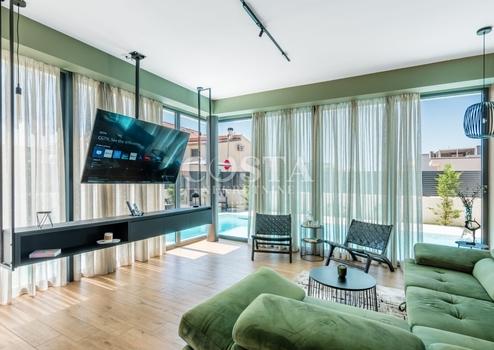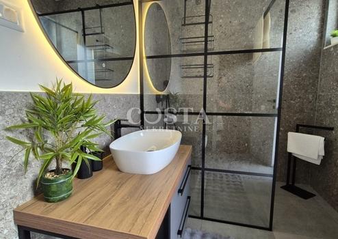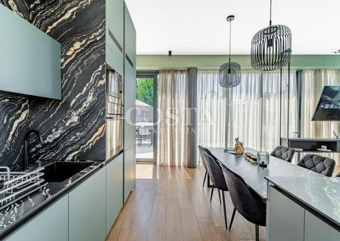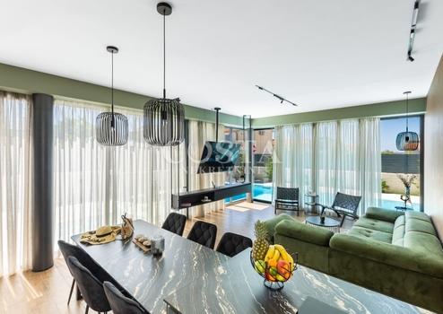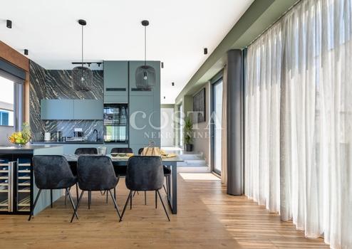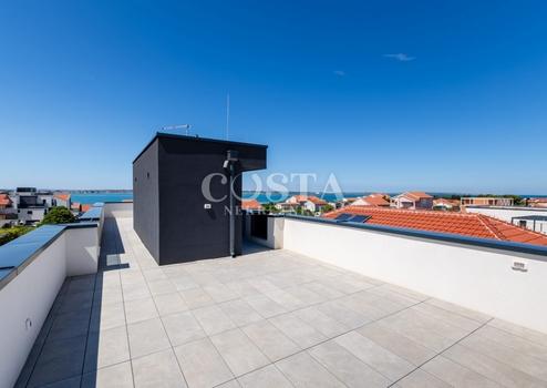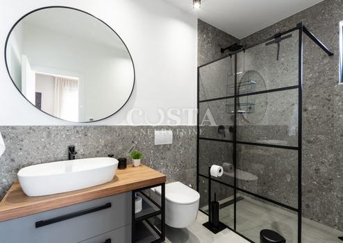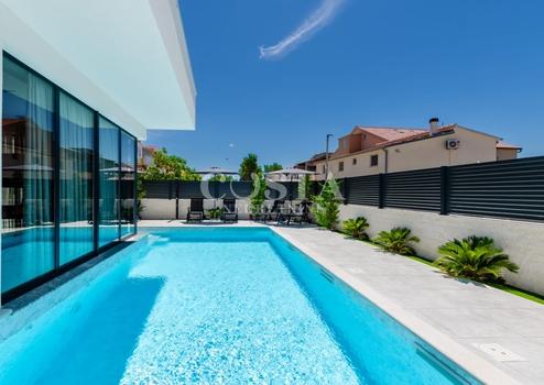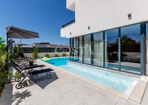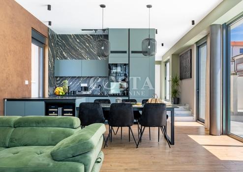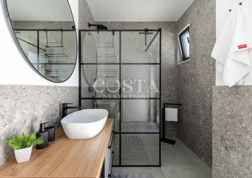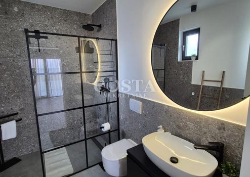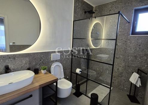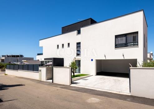 In Vrsi bei Zadar steht eine luxuriöse Villa mit Pool zum Verkauf. Das Anwesen mit einer Wohnfläche von 195 m² befindet sich auf einem 411 m² großen Grundstück und besteht aus Erdgeschoss, Obergeschoss und Dachterrasse. Das modern eingerichtete Erdgeschoss verfügt über ein Wohnzimmer, eine Küche mit Essbereich, ein Gäste-WC und eine Garage. Im Obergeschoss befinden sich drei Schlafzimmer mit jeweils eigenem Bad und eine Terrasse mit beeindruckendem Meerblick. Auf der Dachterrasse erwarten Sie eine Sommerküche und ein Whirlpool. Im komplett umzäunten Innenhof der Villa befinden sich ein Pool, ein Garten und zwei zusätzliche Parkplätze. Das Anwesen ist vollklimatisiert und verfügt über Fußbodenheizung.