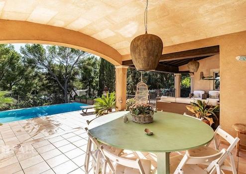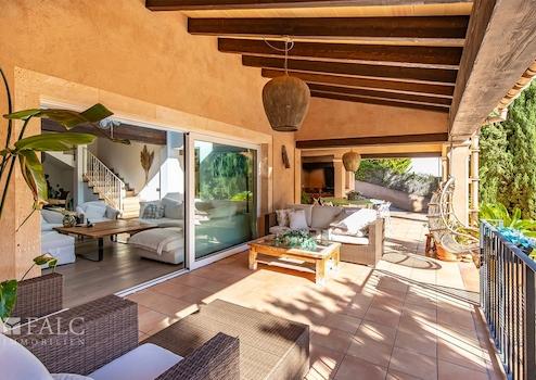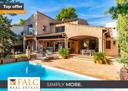 Diese schöne Villa in Santa Ponsa befindet sich in einer exklusiven Wohngegend in der Nähe vom kleinen Yachthafen Club Nautico Santa Ponsa und von mehreren Golfplätzen.