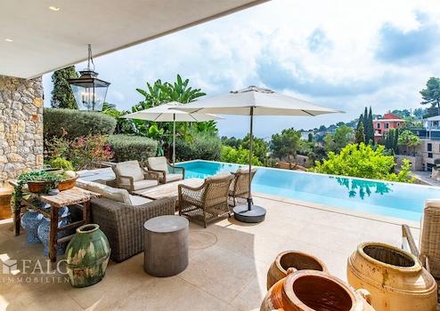 Diese stilvolle Villa in Genova befindet sich in einem begehrten Stadtviertel von Palma, nur eine kurze Autofahrt vom Stadtzentrum entfernt, und beeindruckt mit einem wunderschönen Blick auf das Meer, die Bucht von Palma und die Küste.