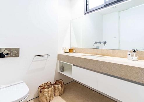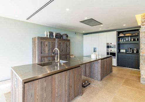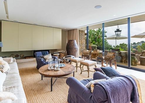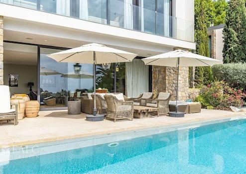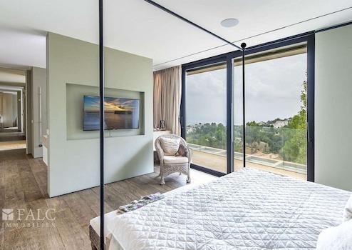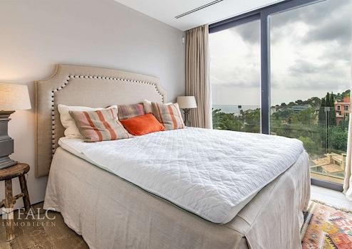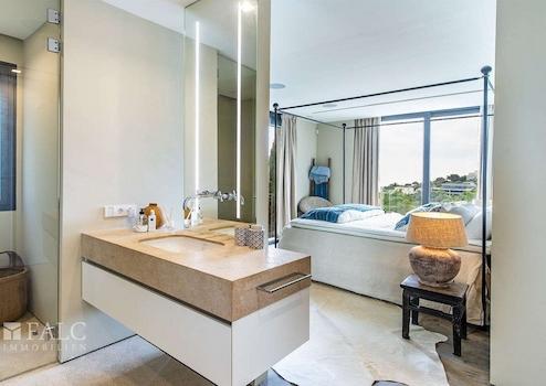 Mit viel Charme und zeitgenössischem Design präsentiert sich die im Jahr 2016 fertiggestellte Villa in einem neuwertigen Zustand. Die Kombination aus Naturstein und Holz schafft eine sehr gemütliche und besondere Atmosphäre. Auf ca. 356 m2 Wohnfläche verteilen sich die Räumlichkeiten auf 3 Etagen. Der Wohn-/Essbereich mit luxuriöser Einbauküche ist offen gestaltet und bietet Zugang zur Aussenterrasse mit Infinity-Pool und einem atemberaubenden Blick auf das Meer. Die grossen Fensterfronten lassen viel Licht in die Räume und schaffen eine harmonische Verbindung zum mediterranen Aussenbereich. Auf der oberen Etage befinden sich 4 Schlafzimmer, davon 2 mit privaten Bädern. Das Hauptschlafzimmer mit privater Terrasse verfügt über einen Ankleideraum und ein elegantes Badezimmer en Suite. Das schöne separate Apartment mit Badezimmer auf der unteren Etage bietet Gästen ausreichend Platz und Komfort.