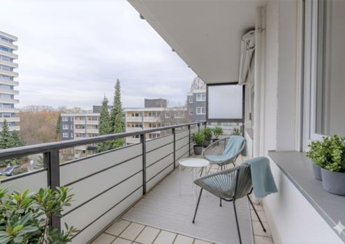 Balkon: Ca. 12 m² großer Balkon, überdacht mit Markise in Südwest-Ausrichtung, Zugang durch Wohnbereich