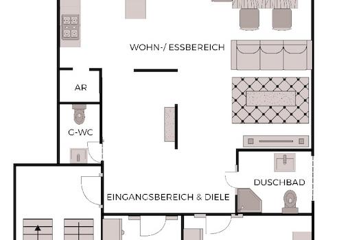 Beim Betreten der Wohnung gelangen Sie zunächst in die zentral gelegene Diele, die ausreichend Platz für eine Garderobe bietet.