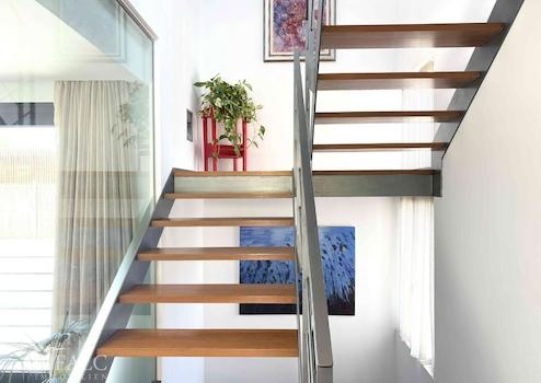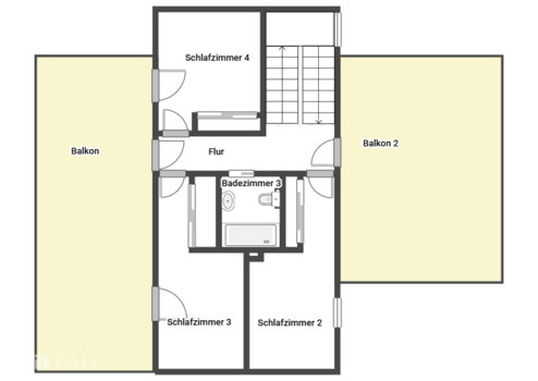 Über eine elegante Treppe gelangt man in das Obergeschoss, das drei weitere helle Schlafzimmer beherbergt. Ein stilvolles Badezimmer mit hoher Decke und raffinierter Lichtgestaltung unterstreicht den exklusiven Charakter dieser Etage. Zwei großzügige Terrassen eröffnen schöne Ausblicke und bieten ideale Plätze zum Entspannen – sei es für ein Frühstück in der Sonne oder ruhige Abendstunden.