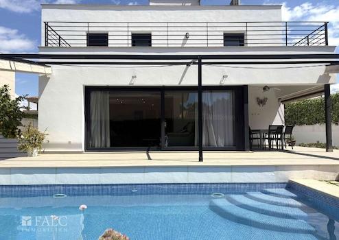 In einer der begehrtesten und gleichzeitig angenehm ruhigen Wohngegenden von Las Maravillas, nur wenige Gehminuten von der Playa de Palma entfernt, befindet sich dieses stilvolle, modern konzipierte Chalet. Die Immobilie überzeugt durch ihre klare Architektur, ein durchdachtes Raumkonzept und ein Wohnambiente, das höchsten Ansprüchen gerecht wird.