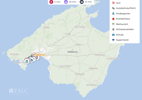 Die Immobilie liegt in Bendinat, einer ruhigen, gepflegten Wohnlage im Südwesten Mallorcas, die für kurze Wege und ein entspanntes Alltagsgefühl steht. Hier wohnen Sie angenehm zurückgezogen und profitieren gleichzeitig von einer sehr guten Infrastruktur direkt im Umfeld.