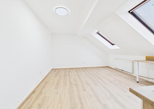 Dank der zahlreichen Dachfenster ist die Wohnung besonders hell und sonnendurchflutet. Die Ausrichtung in den ruhigen Innenhof sorgt gleichzeitig für ein angenehmes Wohnklima und ausreichend Ruhe – ideal für Singles oder junge Paare.