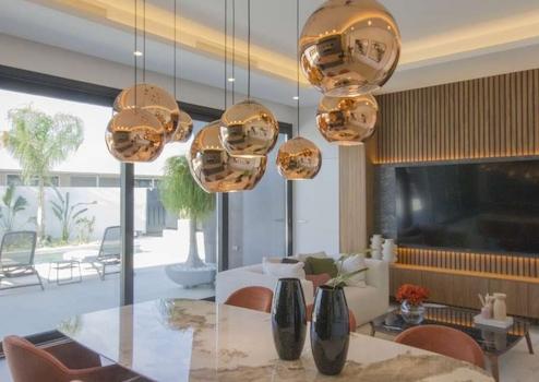 Diese Villen verfügen über das Konzept eines geräumigen Hauses mit viel natürlichem Licht dank ihrer großen Fenster.