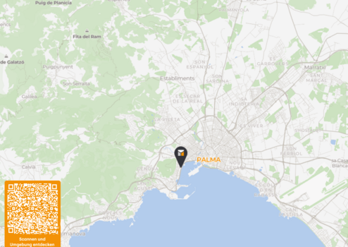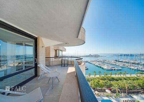 Der Balkon, der sich über die gesamte Länge des Wohnbereichs erstreckt, bietet ausreichend Platz für eine gemütliche Lounge oder Sitzgruppe. Hier lässt sich der Ausblick auf den Hafen von Palma sowie die mediterrane Atmosphäre in vollen Zügen genießen.