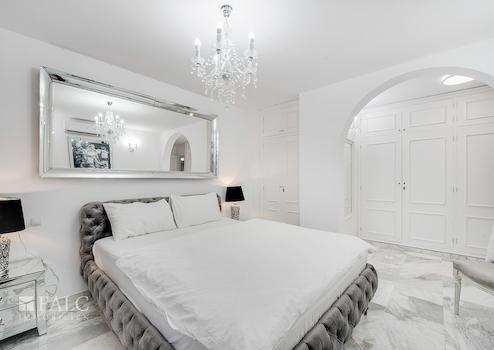 Das Apartment verfügt über insgesamt fünf Schlafzimmer, die großzügig geschnitten sind und vielfältige Nutzungsmöglichkeiten bieten. Ein besonderes Highlight ist das Master-Schlafzimmer mit direktem Balkonzugang sowie einem angrenzenden Ankleidebereich, der zusätzlichen Komfort und Privatsphäre gewährleistet.