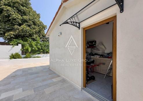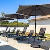 Der großzügige Garten umfasst einen großen Swimmingpool mit Sonnenterrasse, einen Whirlpool und ein 40 m² großes Nebengebäude. Ein Teil des Gebäudes ist für Unterhaltung und Spiele ausgestattet, während der andere Teil als Lagerraum dient. Im Außenbereich befinden sich zudem eine Sommerküche und ein offener Kamin, die ein ideales Ambiente für entspannte Sommertage schaffen. Das vollständig eingezäunte Grundstück bietet Platz für bis zu sechs Fahrzeuge und verfügt über ein ferngesteuertes Tor sowie eine Videoalarmanlage.