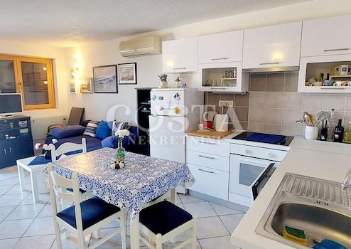 Zum Verkauf steht ein komplett möbliertes, freistehendes Haus mit drei separaten Wohnungen, großzügigen Terrassen und herrlichem Meerblick. Das Anwesen mit einer Wohnfläche von 150 m² befindet sich auf einem 214 m² großen Grundstück und besteht aus drei separaten Wohneinheiten, die nach Wunsch der zukünftigen Eigentümer zu einer Wohneinheit verbunden werden können. Im Erdgeschoss befinden sich zwei Wohnungen, jeweils mit Wohnzimmer mit Küche, einem Schlafzimmer und einem Badezimmer mit WC. Im ersten Stock befindet sich eine größere Wohnung mit Wohnzimmer mit Küche, zwei Schlafzimmern und einem Badezimmer mit WC. Neben dem Haus befindet sich ein angelegter Garten. Das Anwesen verfügt außerdem über große Abstellräume, darunter zwei Abstellräume hinter dem Haus und einen Dachboden mit separatem Zugang. Der Grillplatz und die großzügigen Terrassen bieten viel Platz zum Entspannen und geselligen Beisammensein in ruhiger Umgebung. Das Haus liegt erhöht und hat nur ein Nachbarhaus, wodurch ein unverbaubarer Meerblick gewährleistet ist. Nur wenige Gehminuten von der Küste sowie Cafés und Restaurants entfernt, befindet sich dieses komplett möblierte und sofort bezugsfertige Anwesen, das sich ideal sowohl als dauerhafter Wohnsitz als auch für die touristische Nutzung eignet. Auf dem Grundstück befindet sich ein Stellplatz, und direkt vor dem Gebäude gibt es einen großzügigen öffentlichen Parkplatz für mehrere Fahrzeuge – ein deutlicher Vorteil in dieser Lage.
