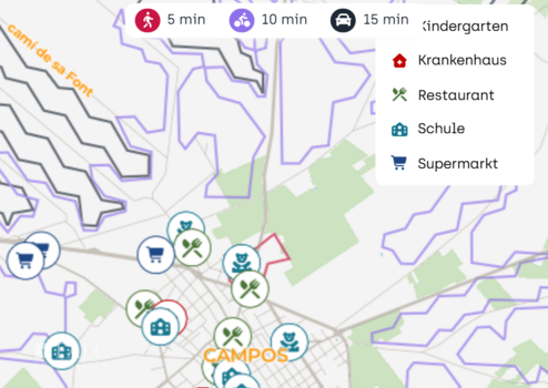 Für Familien ist die Lage praktisch: Kindergärten wie die escoleta Plou i fa sol sind gut erreichbar, ebenso Schulen im Ort. Grünflächen und Plätze wie die plaça de s Olivera laden zu kurzen Wegen an die frische Luft ein, und Sportangebote wie das Camp Municipal d Esports ergänzen die Freizeitmöglichkeiten.