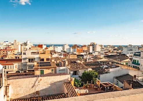 Die Lage verbindet urbanes Leben mit Ruhe und Wohnqualität: charmante, ruhige Nebenstraßen und gleichzeitig eine hervorragende Anbindung an die wichtigsten Verkehrsachsen machen den Standort besonders attraktiv. Die Ringstraße sowie die Autobahn sind in kurzer Zeit erreichbar, und auch der Flughafen Palma de Mallorca liegt nur ca. 15–20 Minuten Fahrzeit entfernt, was die Lage sowohl für Eigennutzer als auch für Investoren äußerst praktisch macht.
