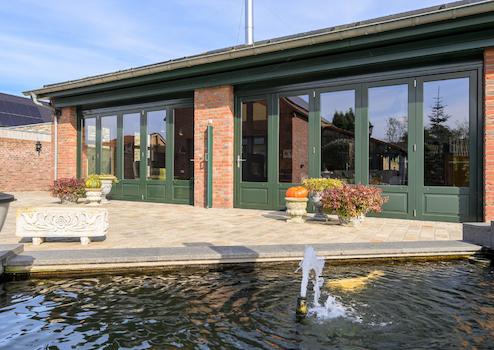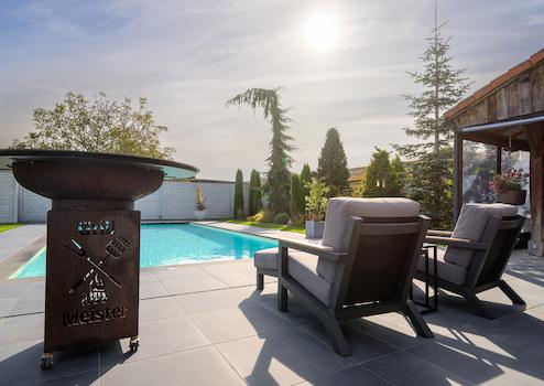 Im angelegten und pflegeleichten Garten erwartet dich eine wahre Oase der Ruhe. Der Garten bietet reichlich Privatsphäre und verfügt außerdem über einen beheizten Pool (mit automatischer Lamellenabdeckung), eine Außendusche, einen Teich und eine große Rasenfläche.