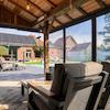 Die freistehende Garage ist mit einem elektrischen Tor, einem Dachboden und einem WC ausgestattet. Die angrenzende überdachte Terrasse bietet einen wunderbaren Platz zum Genießen.