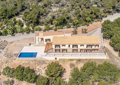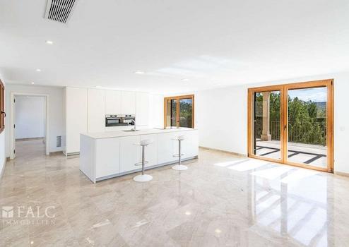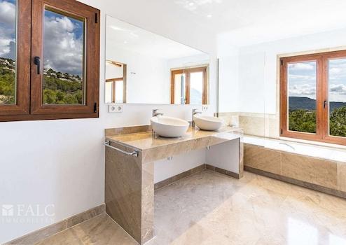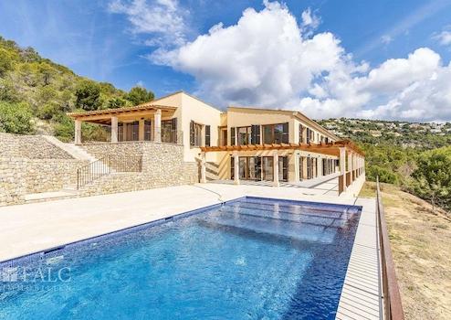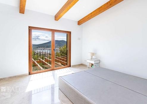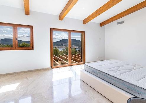 Diese wunderschöne Neubau-Finca in Puerto de Andratx mit südöstlicher Ausrichtung bietet danke der erhöhten Lage einen fantastischen Blick auf das Meer und den luxuriösen Yachthafen. Die Immobilie befindet sich auf einen Grundstück von ca. 60.375m2 und bietet eine Wohnfläche von ca. 480 m2 aufgeteilt auf 2 Ebenen. Der Eingang zum Haus befindet sich im ersten Stock und bietet einen grosszügigen Eingangsbereich, ein lichtdurchflutendes Wohnzimmer, ein angrenzendes Apartment mit 1 Schlafzimmer en suite, sowie weitere 3 Schlafzimmer mit Bädern en Suite. Auf der Wohnebene befindet sich die offene und äusserst moderne Küche mit Essbereich und einen schicken Salón mit Zugang zu einer grossen Terrasse mit einem wunderschönen Pool, der einen herrlichen Ausblick über den Hafen und die Berge bietet. Ebenso befindet sich auf dieser Ebene ein Schlafzimmer en suite. Geniessen Sie die absolute Ruhe und tolle Aussicht in dem zauberhaften mediterranen Ambiente der Insel bei Tag und Nacht. Zu den weiteren Aussattungsmerkmalen gehören: Einbauschränke, Marmorfliesen, Fussbodenheizung, Klimaanlage, doppelt verglaste PVC-Fenster, Holzblendläden, sowie Parkmöglichkeiten für ungefähr 15 Fahrzeuge. Der luxuriöse Yachthafen Puerto Andratx mit seinen zahlreichen exklusiven Geschäften und Restaurants, sowie der Golfplatz sind nur wenige Autominuten entfernt. Der internationale Flughafen ist 35 Autominuten entfernt.