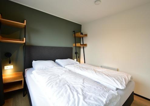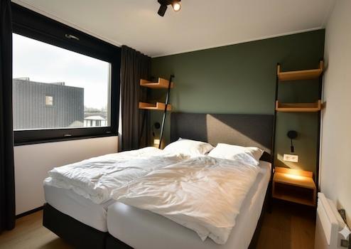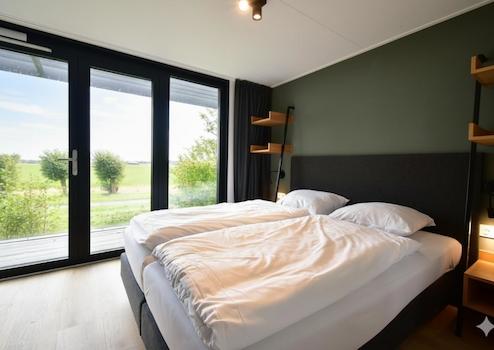 Schlafzimmer 1 ist ein ruhiges Doppelzimmer mit viel Tageslicht und direktem Zugang zum Balkon, mit freiem Blick auf die Polderlandschaft. Dieses Schlafzimmer verfügt über ein eigenes Badezimmer.