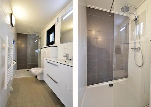 Badezimmer 2 bietet zusätzlichen Komfort mit einer zweiten Dusche und einem Waschbecken, wodurch die Unterkunft für mehrere Gäste angenehm ist.