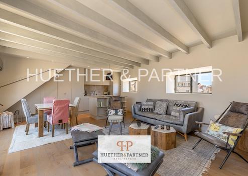 Diese exklusiv kernsanierte Dachgeschosswohnung vereint modernen Wohnkomfort mit dem besonderen Flair der Altstadt von Palma. Das offene Wohnkonzept mit bodentiefen Fenstern sorgt für viel Tageslicht und eine angenehme, großzügige Raumwirkung.