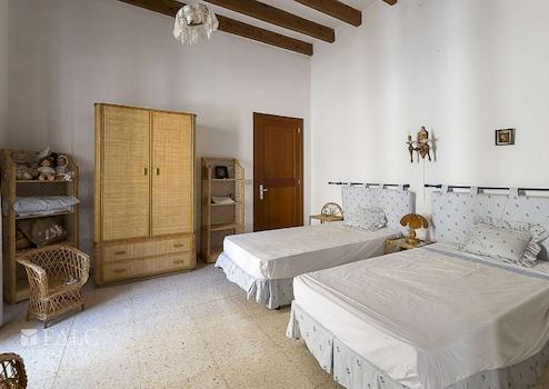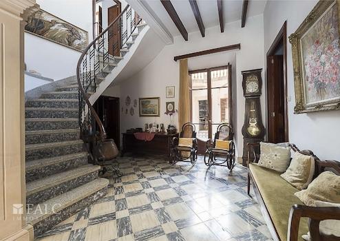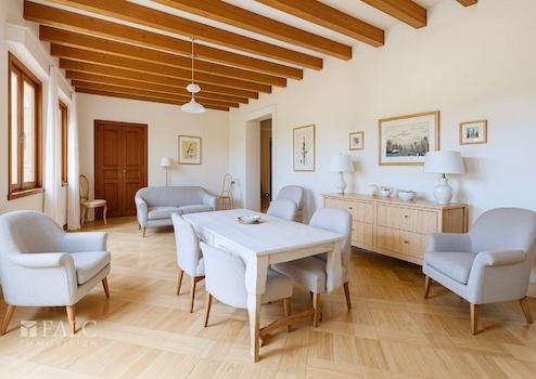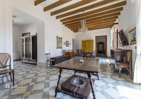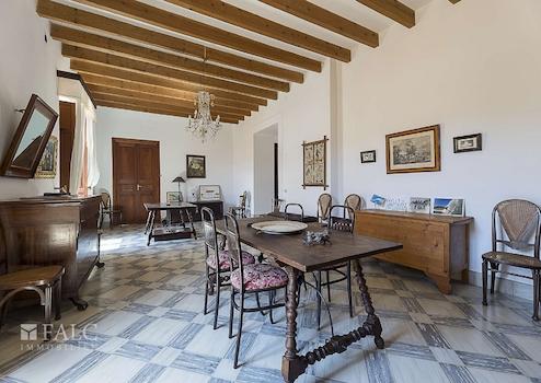Das Haus besticht durch seine authentisch mallorquinische Bauweise, erhaltene Originalelemente wie sichtbare Holzbalken und hohe Decken verleihen dem Objekt einen besonderen Charme. Sechs Schlafzimmer, drei Badezimmer, eine separate Küche sowie ein weitläufiger Wohn- und Essbereich schaffen eine ideale Basis für komfortables Wohnen oder stilvolle Gästeunterbringung.