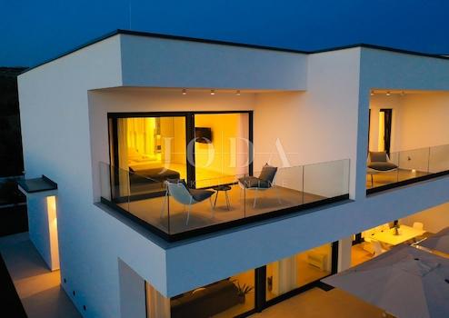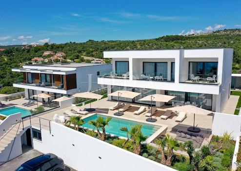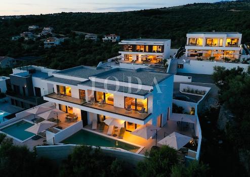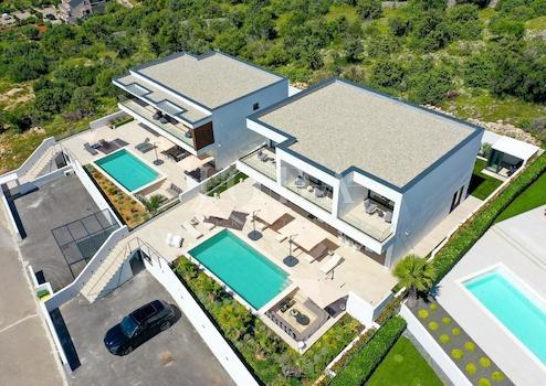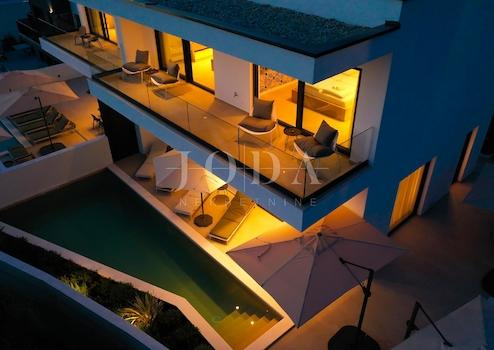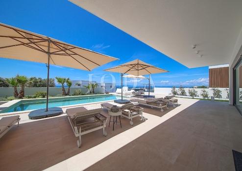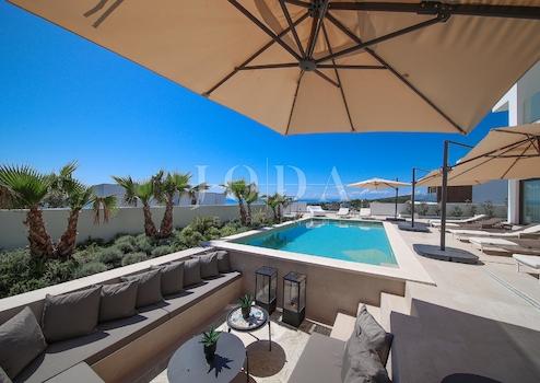 Wir bieten eine luxuriöse, moderne Villa mit Pool und spektakulärem Meerblick in bester Lage im kleinen Ort Jakišnica auf der Insel Pag zum Verkauf an.