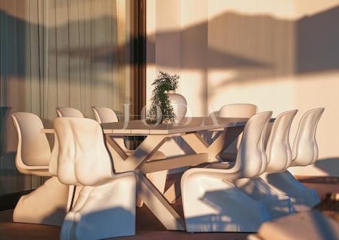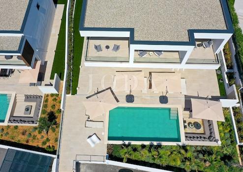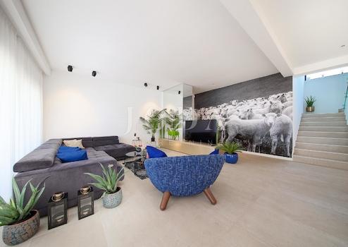 Die Villa ist komplett mit modernen Designermöbeln ausgestattet. Weitere Merkmale sind dreilagige Aluminiumfenster und -türen von Shucco (7,5 cm starke Profile), Mitsubishi Inverter-Klimaanlagen in allen Räumen, Fußbodenheizung, hochwertige Keramikfliesen und Parkett, Kronleuchter von Moooi und Intralight-Beleuchtung. Ein privater Parkplatz und ein Sicherheitssystem mit Kameras sind ebenfalls vorhanden.