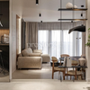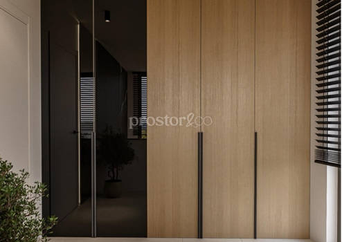 Ein Flur, der sich über die gesamte Länge der Wohnung erstreckt, trennt klar den Wohnbereich vom Schlafbereich, während offene Loggien das Tageslicht tief in den Innenraum führen. Zwei Schlafzimmer sind jeweils ihrer eigenen Badezimmerzone zugeordnet, wobei eines aufgrund seiner Nähe zum Wohnbereich auch als Gästezimmer genutzt werden kann.