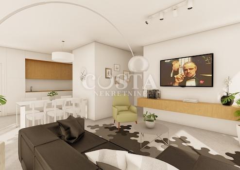 Wohnung im Bau in Diklo, Zadar, zu verkaufen. Die 80,89 m² große Wohnung befindet sich im ersten Obergeschoss eines kleinen Wohnhauses mit nur vier Einheiten in einer exklusiven Anlage mit luxuriösen Neubauten. Sie besteht aus einem Wohnzimmer, einer Wohnküche, drei Schlafzimmern, zwei Badezimmern, einem Flur und zwei Loggien mit zusätzlichen 2,56 m² bzw. 2,96 m². Zur Wohnung gehören außerdem ein 6,30 m² großer Abstellraum, ein Außenstellplatz und ein Garagenstellplatz. Die Gesamtnutzfläche der Wohnung inklusive aller Nebenkosten beträgt 120,21 m² (K.V. 97,81 m²).
