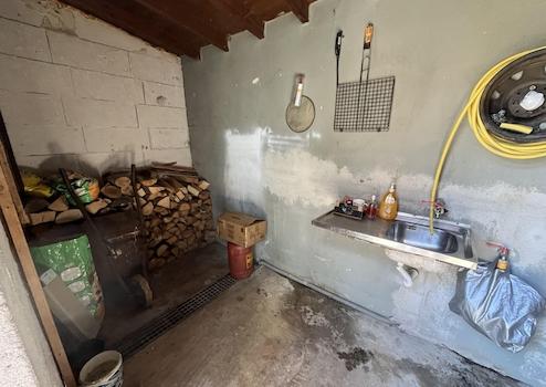 - Außenbereich mit Feuerheizstelle und großzügiger Lagerfläche für Holz