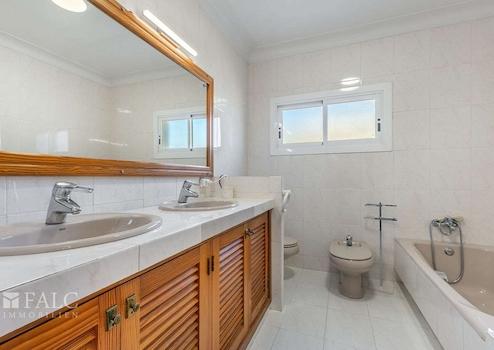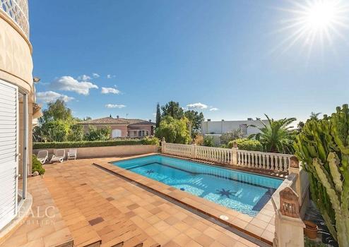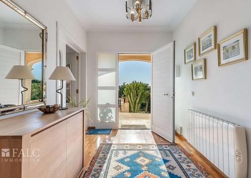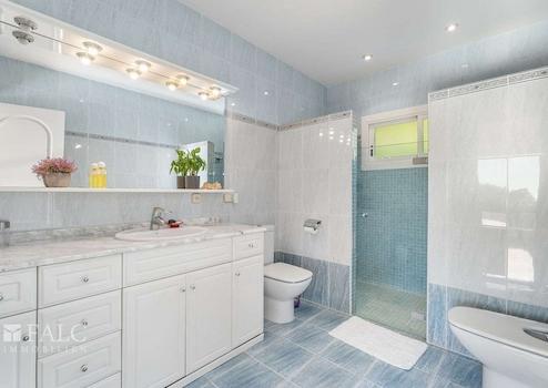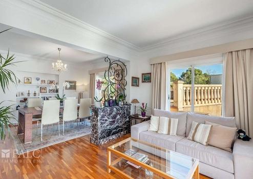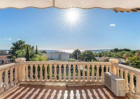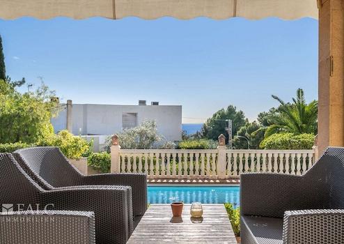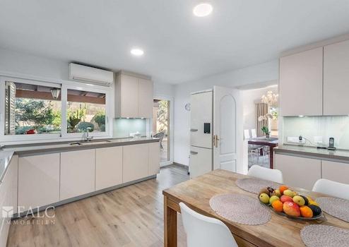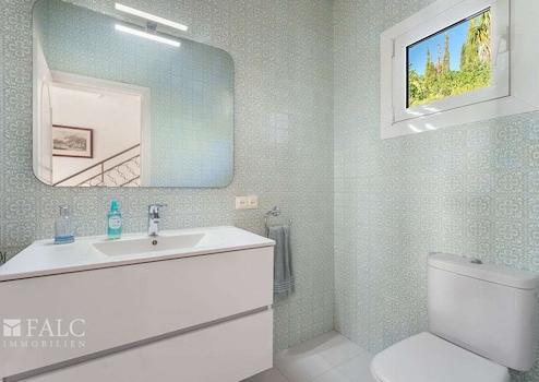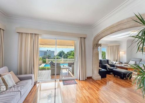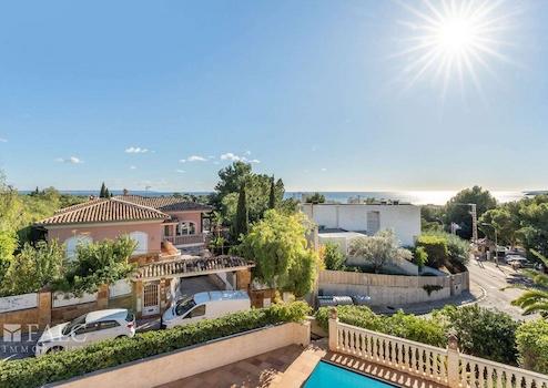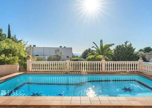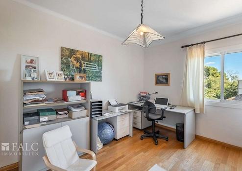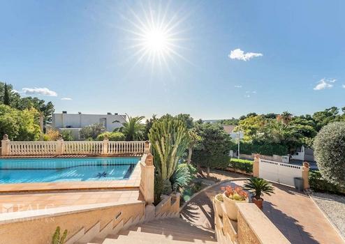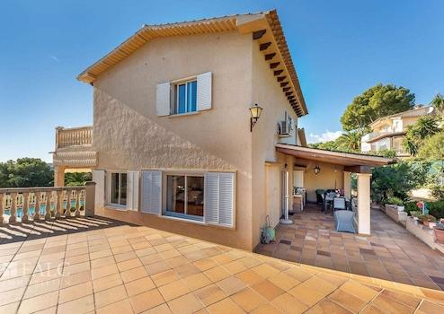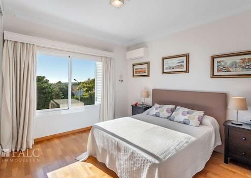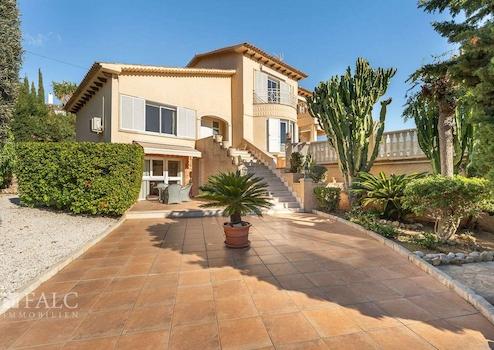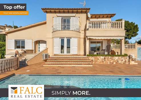 In einer eleganten Wohngegend in der Gemeinde Calviá gelegen, präsentieren wir Ihnen diese wunderschöne Villa in Costa d'en Blanes mit teilweisem Meerblick und einem erfrischenden Swimmingpool. Die Immobilie verfügt über eine bebaute Fläche von ca. 422 m2 und einen gut durchdachten Grundriss, der sich über zwei Ebenen erstreckt und eine optimale Ausrichtung und Konfiguration bietet. Das lichtdurchflutete Erdgeschoss bietet ein gemütliches Wohnzimmer mit Kamin und eine voll ausgestattete Küche, die nahtlos an die einladende Veranda anschliesst, ein komfortables Schlafzimmer mit eigenem Bad, eine Gäste-Toilette und einen Hauswirtschaftsraum. Das obere Stockwerk überzeugt mit 3 weiteren charmanten Schlafzimmern mit atemberaubendem Meerblick. Darüber hinaus verfügt die Immobilie über ein individuelles Gästeapartment (Wohnküche, Schlafzimmer, Bad) und eine geräumige Garage mit ausreichend Platz für bis zu 3 Fahrzeugen. Der wunderschön angelegte Aussenbereich lädt zum Entspannen ein und umfasst einen gepflegten Garten mit einem erfrischenden Swimmingpool. Weitere Ausstattungsmerkmale: Holzboden, Zentralheizung, Kliaanlage, doppelt verglaste Fenster, Einbauschränke und vieles mehr. Costa d'en Blanes ist ein nobles Villengebiet oberhalb des Superyachthafens von Puerto Portals. In unmittelbarer Nähe befinden sich eine Vielzahl von Restaurants, feine Sandstrände und angesehene Schulen. Die Inselhaupstadt Palma ist nur 12 km entfernt.