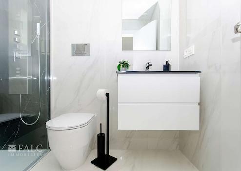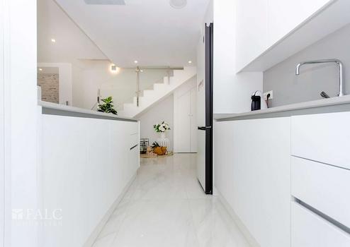 Die Villa verfügt über eine moderne Einbauküche mit hochwertigen Ober- und Unterschränken, einer eleganten Quarzarbeitsplatte sowie Vorinstallationen für alle gängigen Elektrogeräte. Die Schlafzimmer sind mit Einbauschränken ausgestattet und bieten Rückzugsmöglichkeiten mit hohem Wohnkomfort. Die Badezimmer präsentieren sich zeitgemäß mit hochwertigen Sanitärobjekten, Möbeln, Spiegeln, Beleuchtung sowie Fußbodenheizung – im Hauptbad zusätzlich mit Hydromassage-Duschsäule.
